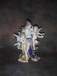 «Ангел с украшенной цветами колонной», Германия (Volkstedt), Высота 14 см.