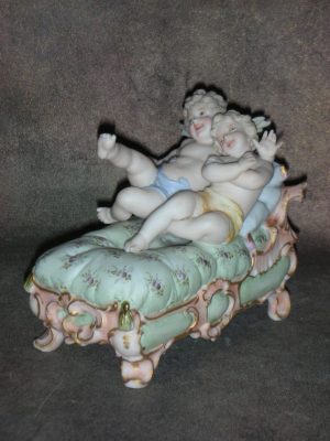 «Ангелочки на кушетке», Германия, Фолькштедт /Volkstedt/, Мануфактура Ричарда Эккерта,1877-94 гг., Высота 7,5 см., основание 10 см. на 5 см.