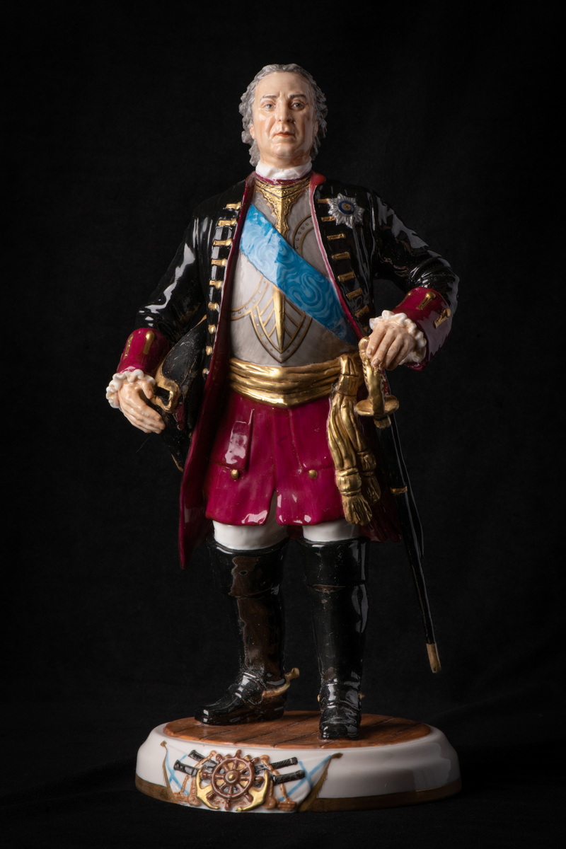 Витгенштейн Пётр Христианович — русский военачальник немецкого происхождения, генерал-фельдмаршал. главнокомандующий русско-прусской армией в Германии. Граф, Отличился В войнах с Францией (1805, 1806-1807), русско-турецкой войне 1806-1812 гг., русско-шведской войне 1808- 1809 гг. В Отечественной войне 1812 г. командовал 1-м пехотным корпусом, прикрывавшим петербургское направление. После смерти М.И. Кутузова был назначен главнокомандующим русско-прусской армией (1813), но после поражения в Лютценском сражении и Бауценском сражении заменен М.Б.Барклаем-де-Толли, главнокомандующий 2-й армией. В русско-турецкой войне 1828- 1829 гг. — главнокомандующий действующей армией.Высота 36 см.