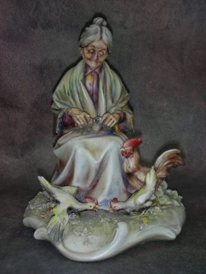 «Бабушка с курами и петухом», Италия, Capodimonte (фабрика Антонио Борсато (Antonio Borsato)), Высота 16 см.