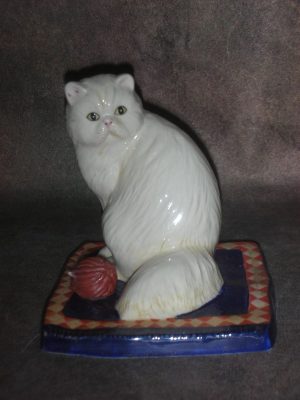 «Белая персидская кошка на коврике», Англия (Royal Doulton), Высота 9 см., основание 9 см. на 8,5 см.