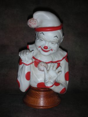 «Белый клоун» — цирковое амплуа, партнёр «Августа» — бюст, бисквитный фарфор, Италия, скульптор Эдвард Дж Рохн, 1984 г., Высота 23 см