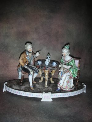 «Дама и Джентльмен за чайным столом», Германия, Высота 17 см., основание 28 см. на 12 см.