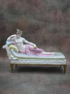 «Дама на кушетке с яблоком в руке», Франция (Севрская фарфоровая мануфактура), Высота 19 см., длина 27 см., ширина 9 см.