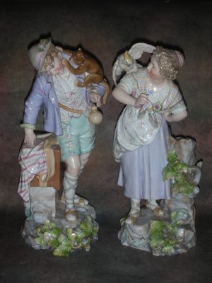 «Дама с попугаем и джентльмен с обезьяной»- пара, Парижские Фарфоровые мастерские, Высота 28 см.