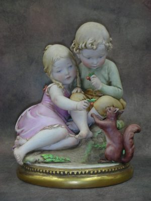 «Дети с белкой», Италия (Capodimonte) скульптор G. Cappe, Высота 20 см., диаметр основания 15 см.