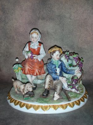 «Детки с виноградной лозой», Италия (Capodimonte), Высота 14 см., основание 18 см. на 15 см.