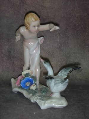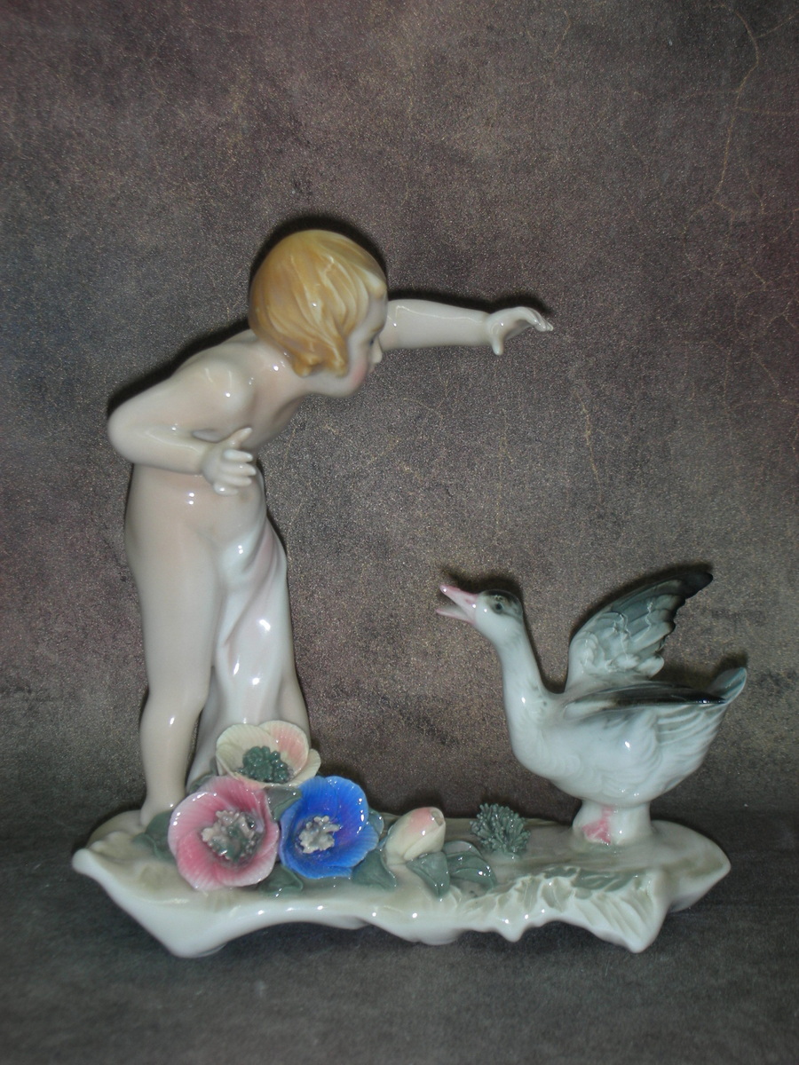 «Девочка и гусь», Германия (Karl ENS), Высота 14 см., основание 13,5 см. на 5,5 см.