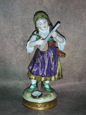 «Девочка с домброй — уличный музыкант», Германия (Volkstedt), Высота 14 см.