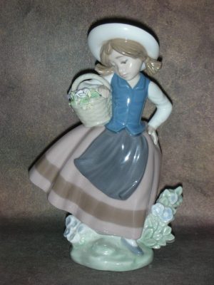 «Девочка с корзинкой цветов», Испания (Lladro), Высота 17 см.
