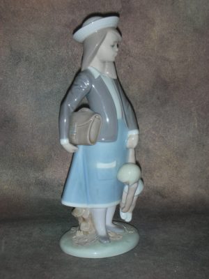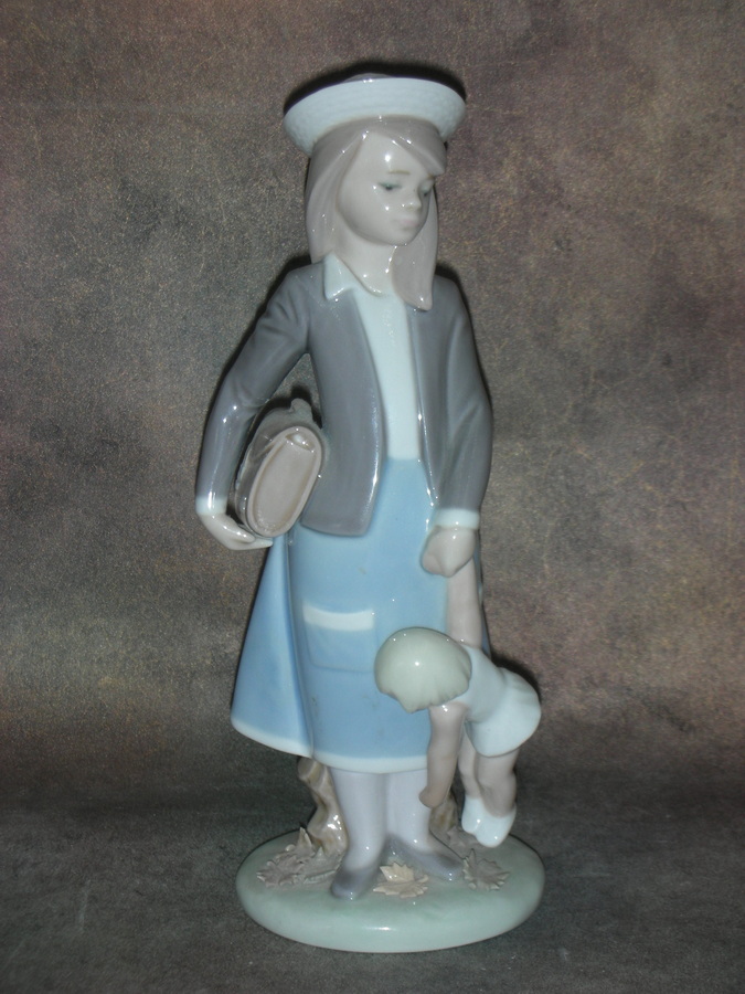 «Девочка с куклой и портфелем», Испания (LLADRO), 1980-2000 гг., Высота 20,5 см.