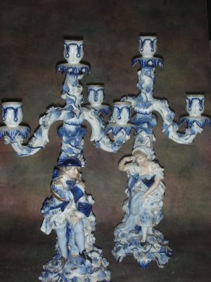 Два подсвечника (канделябра) «Встреча с охоты», Германия (Sitzendorf), Высота 40 см.