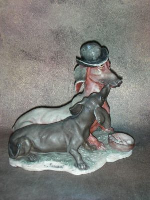 «Две таксы», Италия (Capodimonte), Высота 12,5 см., основание 14 см. на 10 см.