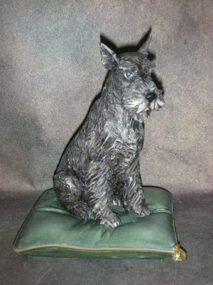 «Ризеншнауцер на зеленой подушке», Италия (Capodimonte), Высота 14 см.
