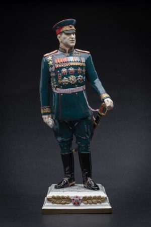 Гео́ргий Константи́нович Жу́ков — советский полководец. Маршал Советского Союза (1943), четырежды Герой Советского Союза, кавалер двух орденов «Победа», шести орденов Ленина, множества других советских и иностранных орденов и медалей. Высота 34 см.