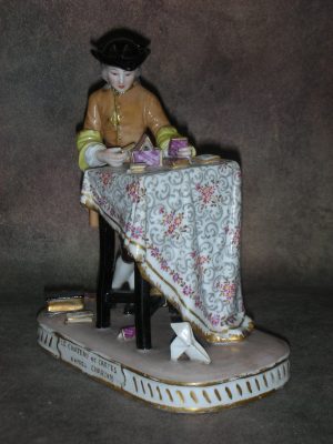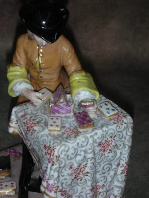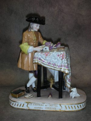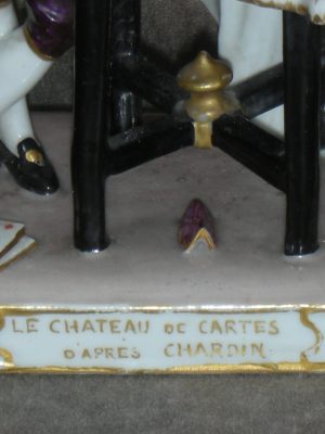 «Карточный домик», по картине Ж.-Б. С. Шардена, Франция (Парижская фарфоровая мануфактура), конец 19 начало 20 века. Высота 14,5 см.