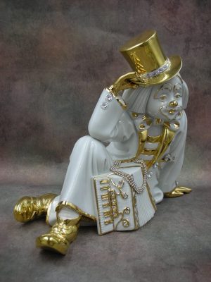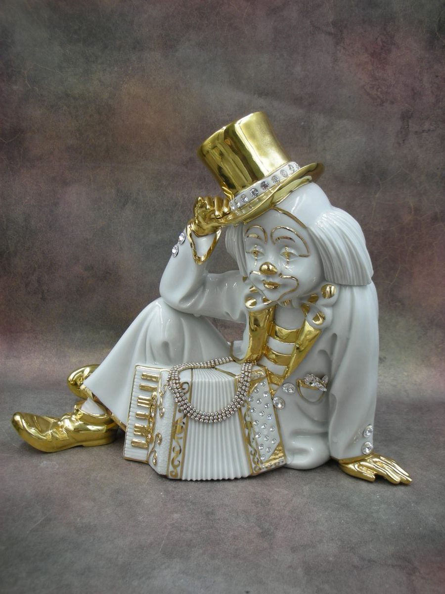 «Клоун с аккордеоном и кристаллами Сваровски», Италия (Capodimonte), Высота 22 см. длина 26 см.