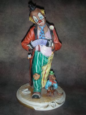 «Клоун с гармонью и обезьяной», Италия (Capodimonte), Высота 28 см.