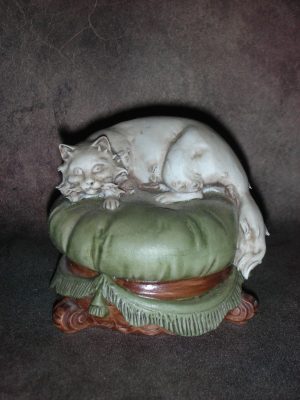 «Кот на пуфе», Италия (Capodimonte), Высота 7 см.