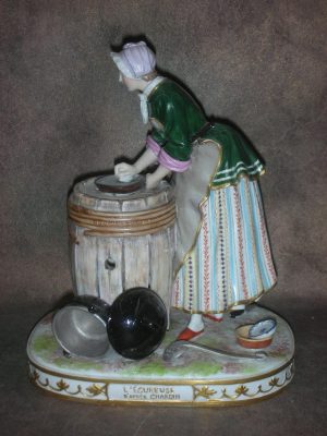 «Кухарка, моющая посуду», по картине Ж.-Б. С. Шардена, Франция (Парижская фарфоровая мануфактура), конец 19 начало 20 века. Высота 20 см, основание 15,5 см. на 10,5 см.