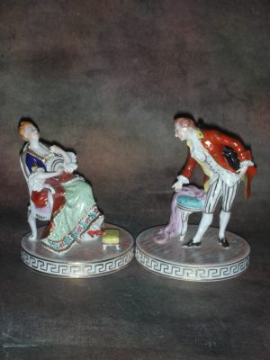 «Леди с веером и Лорд в поклоне» — пара, Германия, Почаппель, Карл Тиме /Carl Thieme/ , Высота 12 см.
