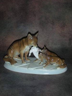«Лиса с лисятами», Германия (Метцлер и Ортлофф), Высота 11,5 см., основание 19,5 на 9,5 см.