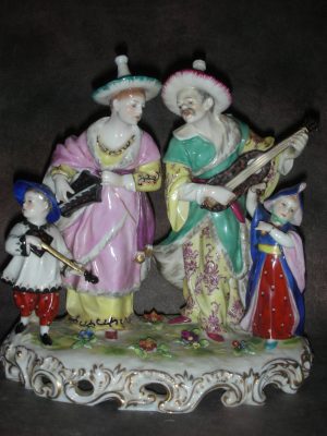 Фарфоровая статуэтка «Малабарцы с музыкальными инструментами», Германия (Volkstedt), Высота 21 см.