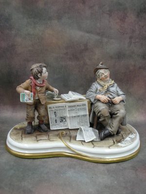 «Маленький покупатель и усталый продавец», Италия (Capodimonte), автор Бруно Мерли, Высота 19 см., основание 31 см. на 20 см.