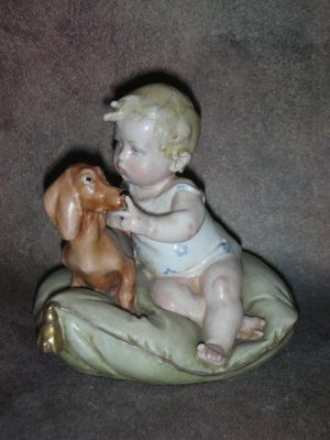 «Малыш с таксой на подушке», Италия (Capodimonte) /Giuseppe Cappe Gelle/ , Высота 8,5 см.