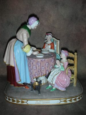 «Молитва перед обедом», по картине Ж.-Б. С. Шардена, Франция (Парижская фарфоровая мануфактура), конец 19 начало 20 века. Высота 20 см, основание 20 см. на 16 см.