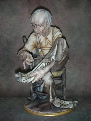 «Мужчина, зашивающий носок», Италия (Capodimonte), Высота 25 см., диаметр основания 14 см.