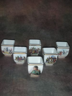«Наполеон и батальные сцены» — шесть коньячных стопок, Франция, Высота 4,5 см.