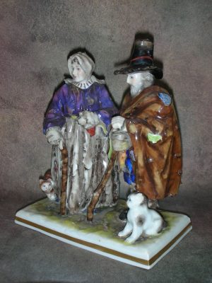 «Нищие с котёнком и щенком», Германия (Volkstedt-Rudolstadt), Высота 16,5 см., основание 14 см. на 8 см.