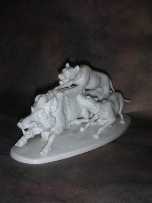 «Охотничьи собаки с кабаном», Германия (Royal Vienna), 1923 — 1980, Высота 12 см.
