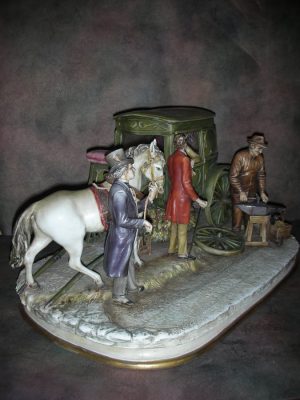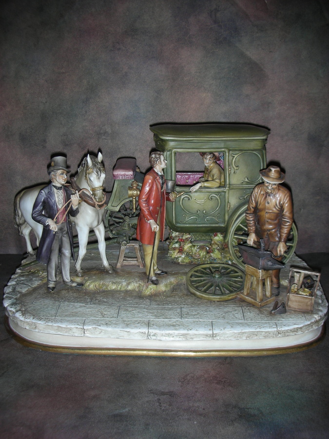 «Остановка дилижанса», Италия (Capodimonte), фабрика Антонио Борсато (Antonio Borsato), Высота 25 см., основание 45 см. на 30 см.