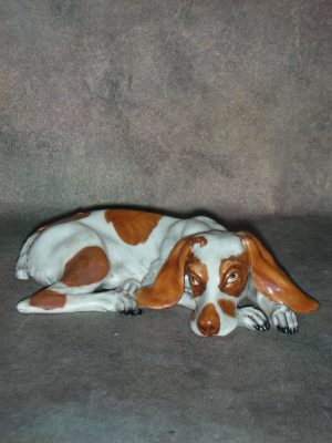 «Отдыхающая гончая собака», Италия (Capodimonte), Высота 4 см., длина 15 см.