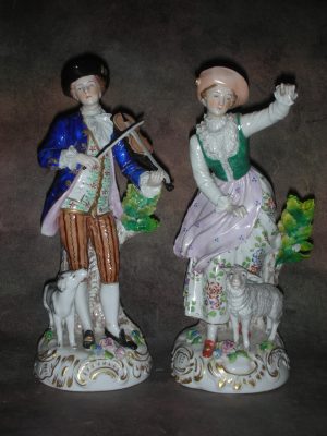 «Пасторальная пара с овечкой и собакой», Германия (Sitzendorf), Высота 23 см.
