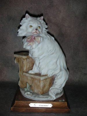 «Персидский кот с бантом», Италия (Capodimonte), Мастер Джузеппе Армани, Высота 18 см.