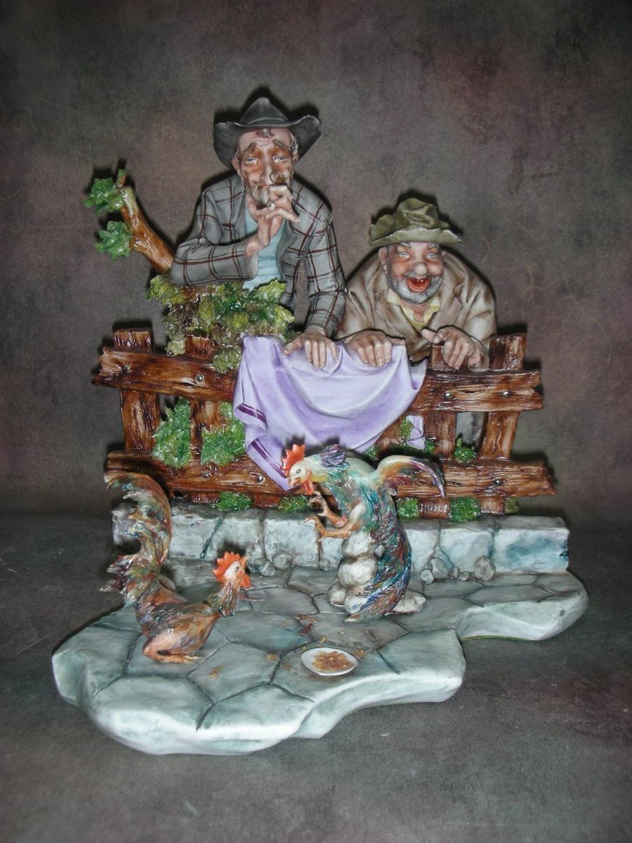 «Петушиные бои», Италия (Capodimonte), фабрика  I.P.A., Высота 25 см., основание 29 см. на 22 см.