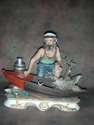 «Подготовка к рыбалке», Италия (Capodimonte), Высота 20 см., основание 26 см. на 19 см.
