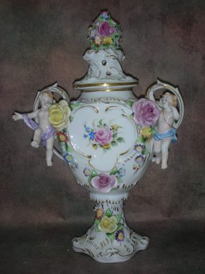 «Путти» — ваза инкрустированная цветами, Германия (Von Schierholz), Высота 32 см., длина 22 см. ширина 13 см.