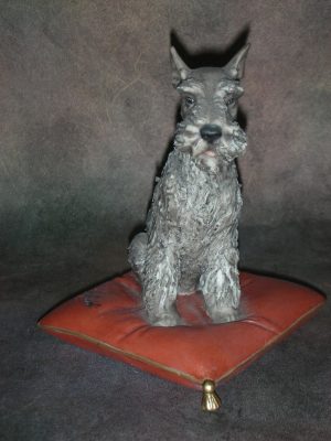 «Ризеншнауцер на красной подушке», Италия (Capodimonte), Высота 14 см.
