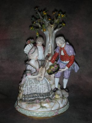 «Романтический сюжет под яблоней», Германия. XIX век, Мейсенская мануфактура, Высота 26 см.