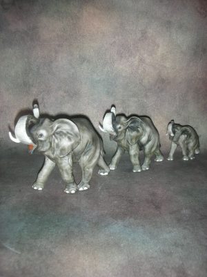 «Семья слонов», Италия (Capodimonte), Высота 12 — 10 — 7 см.