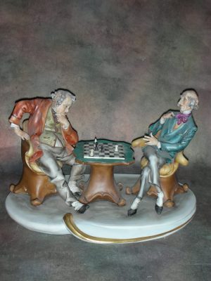«Шахматные посиделки», Италия (Capodimonte), Высота 19 см., основание 35 на 22 см.