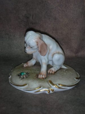 «Щенок и жук», Италия (Capodimonte), Высота 9 см.