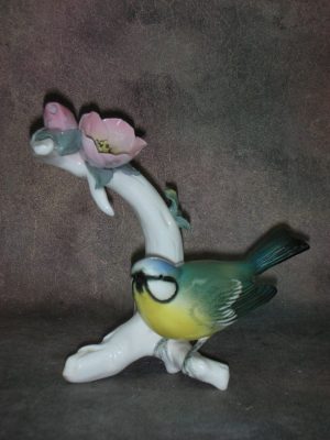 «Синичка на веточке шиповника», Германия (Karl ENS), Высота 12 см.