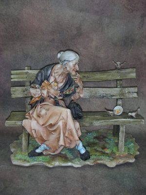 «Старушка, кормящая голубей», Италия (Capodimonte), Высота 18 см., основание 24 см. на 17 см.