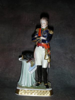 Витгенштейн Пётр Христианович — русский военачальник немецкого происхождения, генерал-фельдмаршал. главнокомандующий русско-прусской армией в Германии. Граф, Отличился В войнах с Францией (1805, 1806-1807), русско-турецкой войне 1806-1812 гг., русско-шведской войне 1808- 1809 гг. В Отечественной войне 1812 г. командовал 1-м пехотным корпусом, прикрывавшим петербургское направление. После смерти М.И. Кутузова был назначен главнокомандующим русско-прусской армией (1813), но после поражения в Лютценском сражении и Бауценском сражении заменен М.Б.Барклаем-де-Толли, главнокомандующий 2-й армией. В русско-турецкой войне 1828- 1829 гг. — главнокомандующий действующей армией.Высота 36 см.
