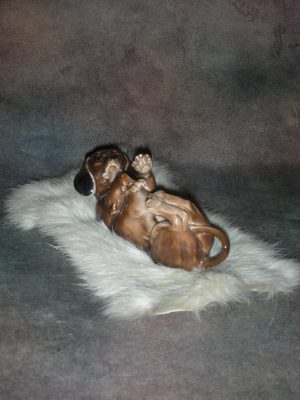 «Такса, лежащая на спине», Германия (Karl ENS), Высота 5 см., длина 13 см.
